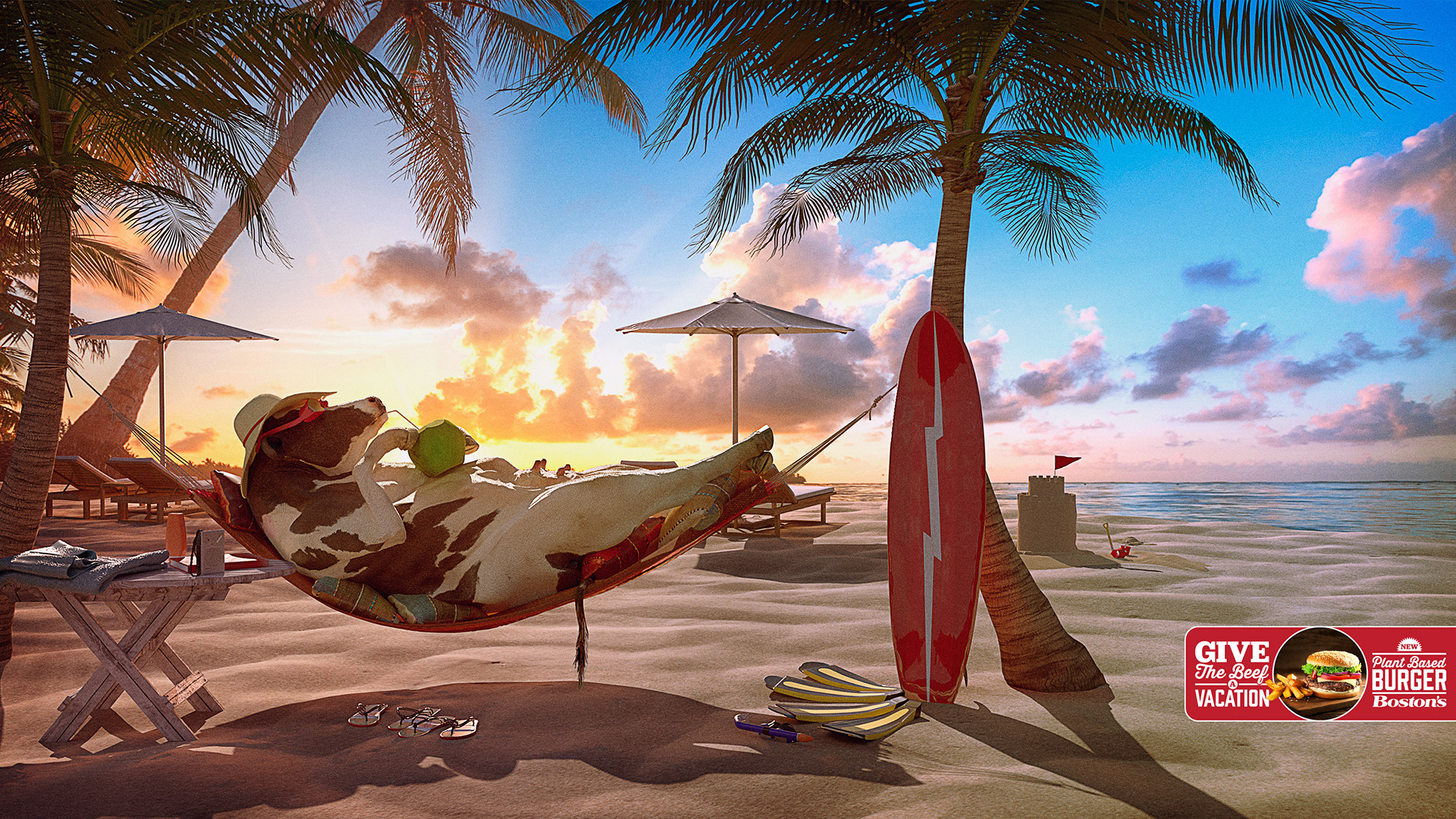Campaña digital para Boston's, donde realice la dirección de arte, retoque fotográfico y desarrollo 3d  :: I did the Art direction as well as the 3d development, look and dev, photo manipulation and integration for this digital campaign for Boston's.